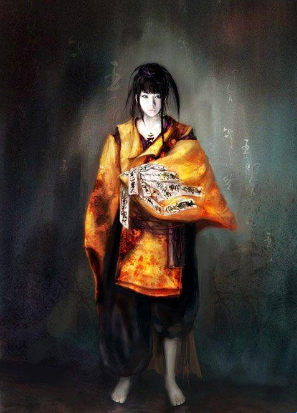 浮月,作为阴之章的主角。一个单纯善良的女孩,如果不是为了找寻父亲,甚至未曾踏出过自己的家门。当其决定与姐姐一同去藤原赖近府上找寻父亲的时候,也同时走向了地狱。游戏初期,浮月就和姐姐暮叶走散,而这么一个柔弱的女孩却没有退缩。