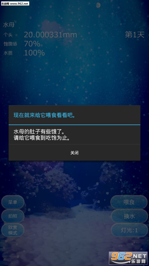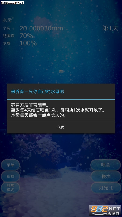 养猫养蛙养水母,如今佛系手游成为了繁忙生活中的一点寄托,本作是一款简单的放置型水母养成游戏。养育方法非常简单。至少每4天给它喂食1次,每周给鱼缸换1次水就行了,然后看着它一点点长大。