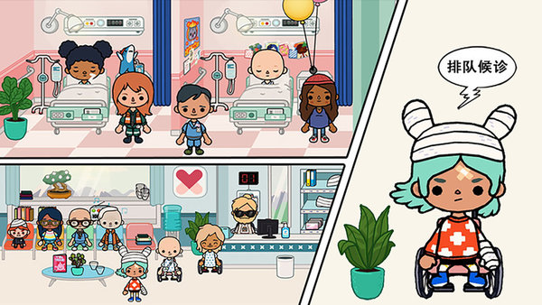 游戏画风简单,适合孩子玩的游戏,但同样成年人也能发现不一样的乐趣;10余种与真实世界相同的职业扮演,儿科医生,眼科医生,普外科医生等,甚至还有护工,餐厅老板。