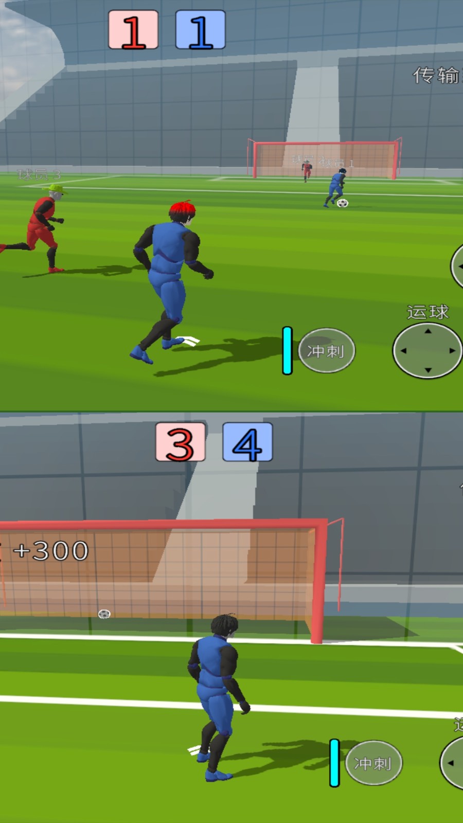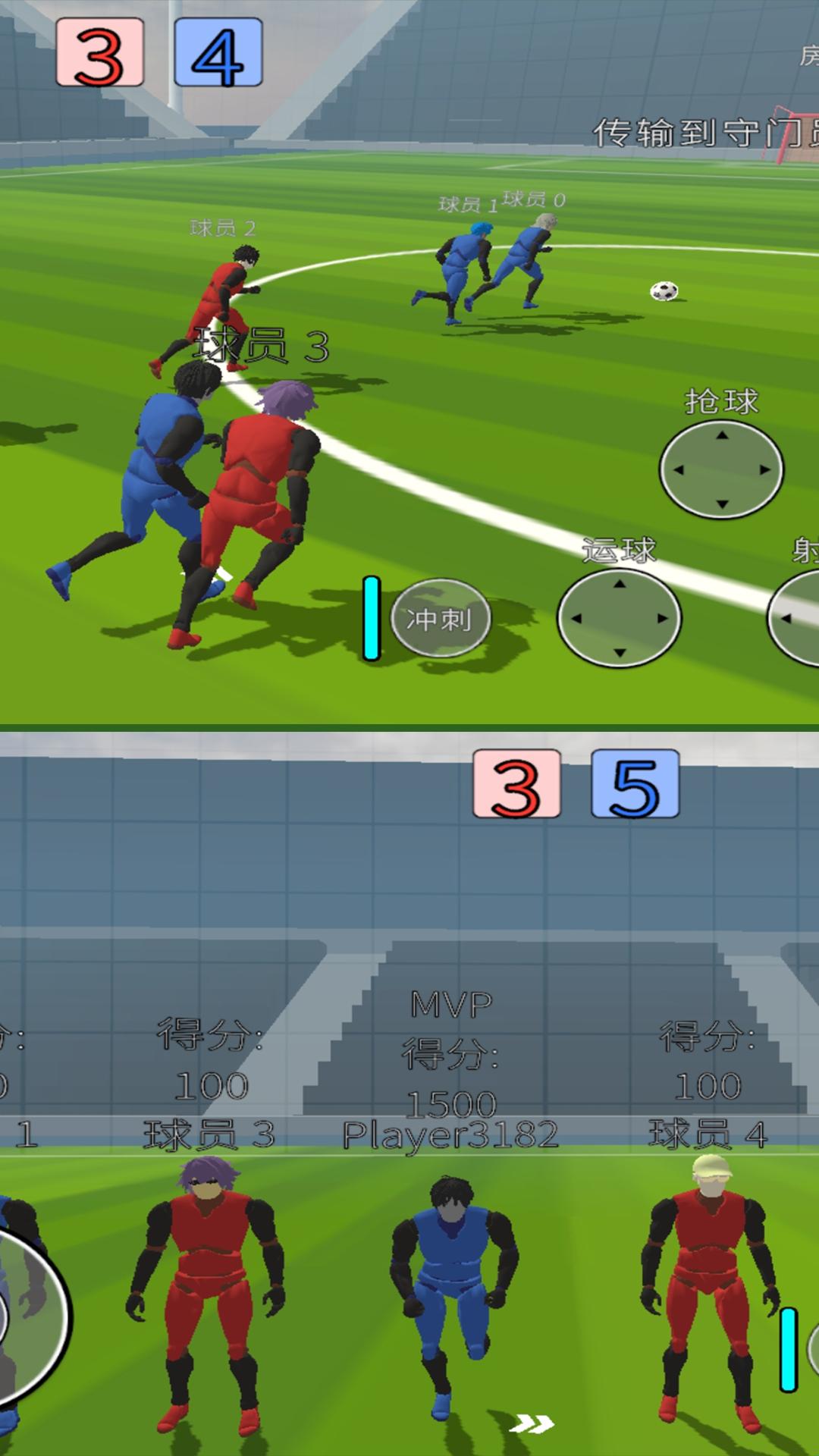 1.3v3多人对战:与对手展开激烈对抗,提升足球技巧。