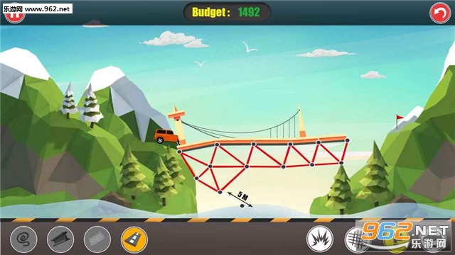 非常好玩的桥梁模拟建造游戏。玩家需要多次尝试,设计出完美的桥梁,并且使用多种材料建设,让汽车能够成功通过,非常考验玩家的想象能力和策略能力!