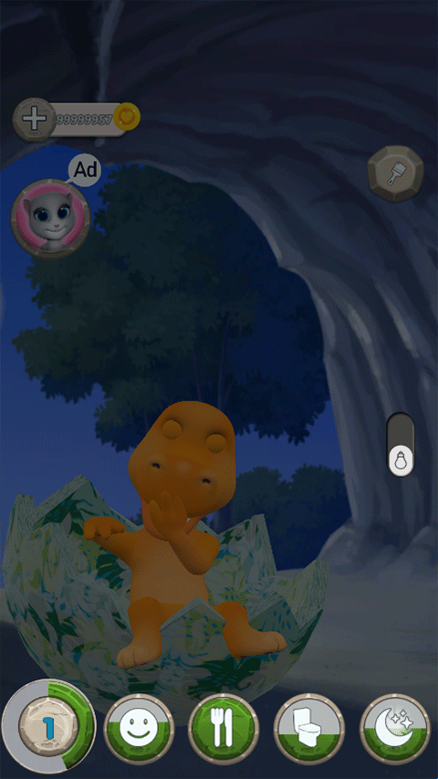 1、首先进入会说话的恐龙最新版,其玩法与汤姆猫游戏类似,你可以抚摸它、手指戳它或者拳轻打它都可以;