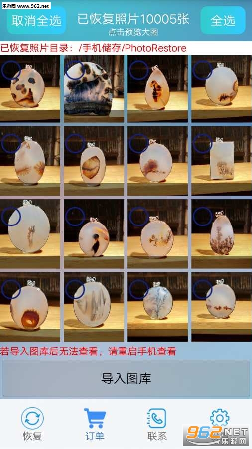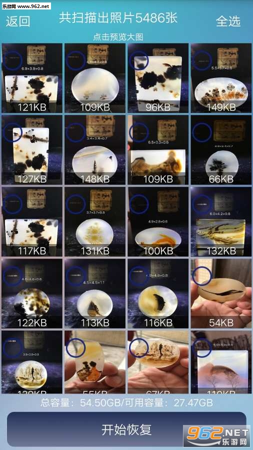 3.列表展示被删除图片,照片可以点击查看大图,可以选择自己想要的照片恢复导出,支持单选/全选。