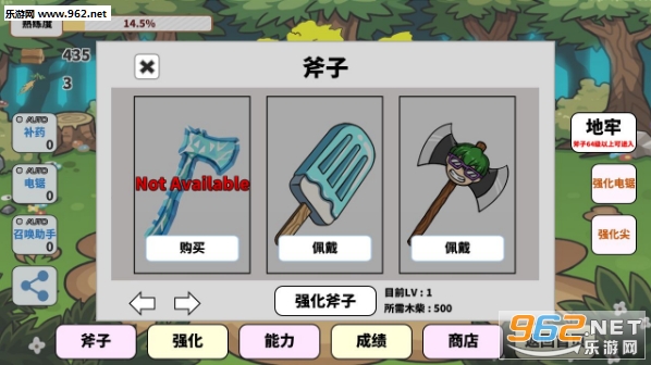 3、想要冒险,你需要的是斧子的强化和各种不断升级的能力,好好砍树吧!