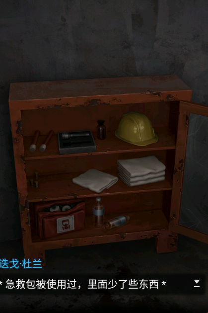 4、进入仓库后,检查应急工具箱,发现毛巾和急救包似乎被取走了。