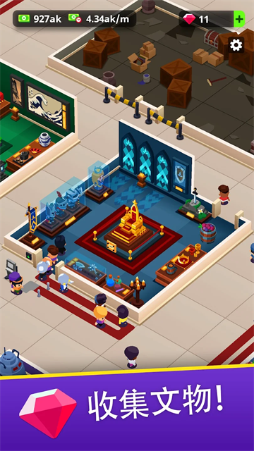 翻新你的博物馆,随着等级提升改变装饰,还可以收集特殊的装饰品来点缀你的博物馆,当然,门票也必须涨价了。