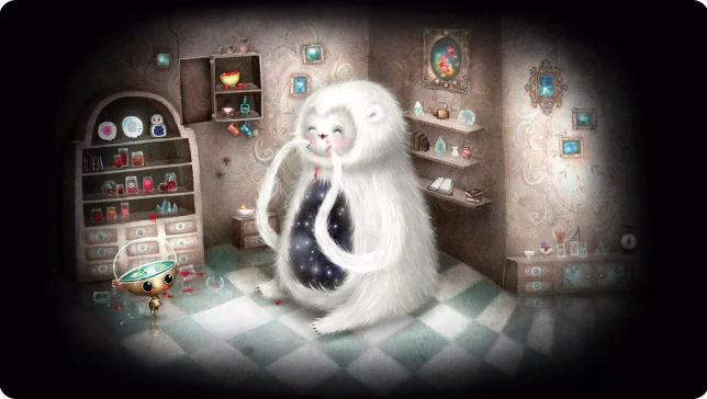 5、邂逅一种名为“星空贝利”、毛茸茸的白色全息图,里面会有一个星系。