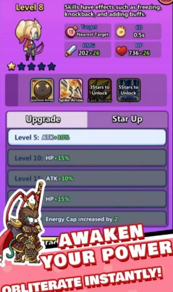 3、不断升级人物,让自己拥有更多的技能释放。