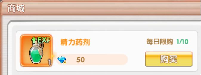 商城里还可以购买「精力药剂」(每天限购10瓶),有条件的小伙伴强烈建议买满,升级飞起!