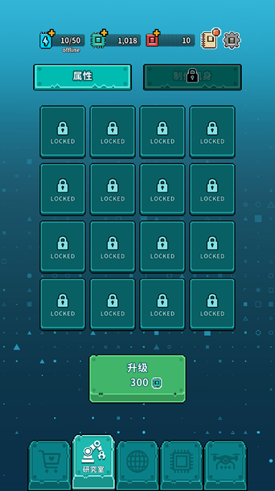 2.设置好后,点击下方研究院按钮可以进行属性升级、制作机身;
