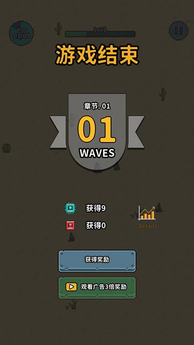 10.如果不小心被怪物击杀则导致游戏结束,可选择复活或者直接获得奖励,然后升级武器和装备后再次挑战。
