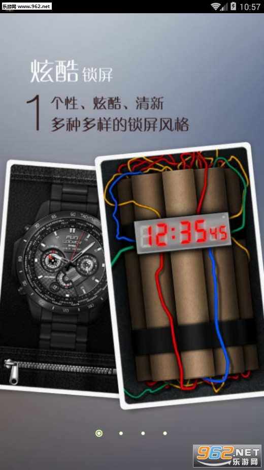 《定时炸弹锁屏软件》是一款为朋友们打造的手机炫酷锁屏软件,现在手机非常的普及,我们应该给自己的手机设置一个锁屏密码,保护自己的隐私,本款软件中有着多种锁屏方式可以选择,其中一种就是定时炸弹,按顺序剪开正确的线才能解锁屏幕。