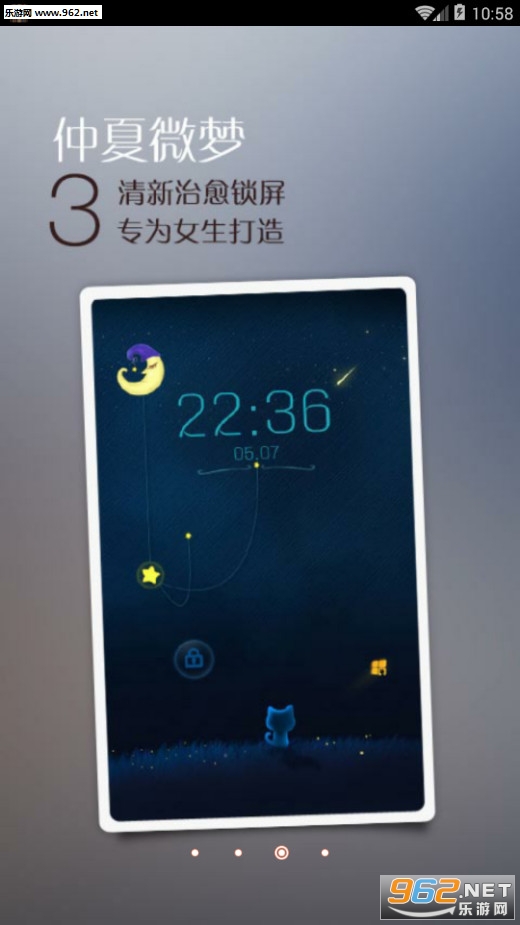最创意的解锁,解锁支持音效,超难文字解锁,等待文字控,支持重力感应的主题还有重力感应效果;