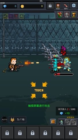 1、轻触屏幕即可开火,击败僵尸敌人。