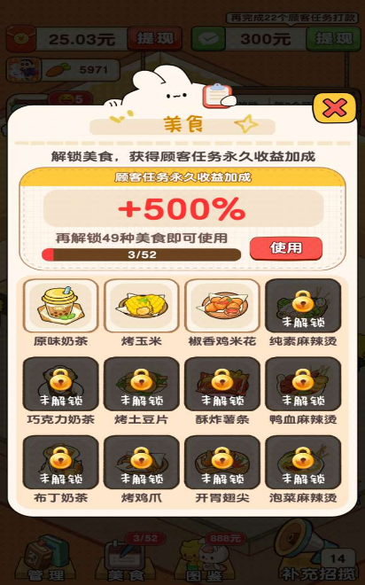 3、升级自己的餐厅会有更多经营挑战等你加入,让你赚取更多的奖励。