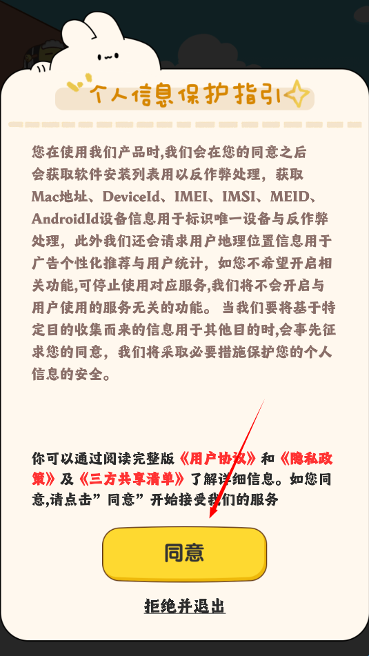 1、阅读相关的使用条例后点击同意进入游戏
