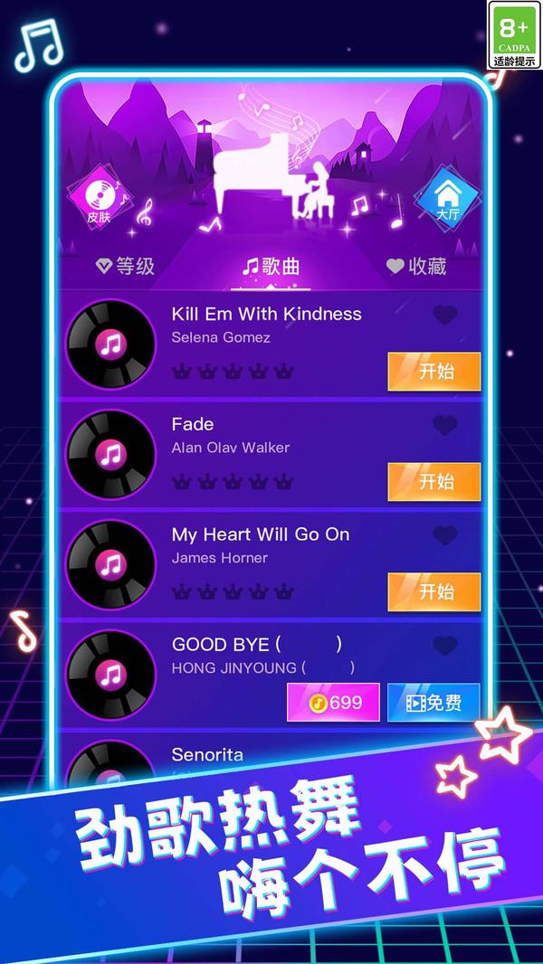 1、选择歌曲:玩家可以在游戏开始前选择自己喜欢的歌曲进行演奏。