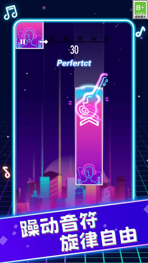 3、音符坠落搭配炫光特效,随节奏变换场景与色彩,打造沉浸式视听盛宴。
