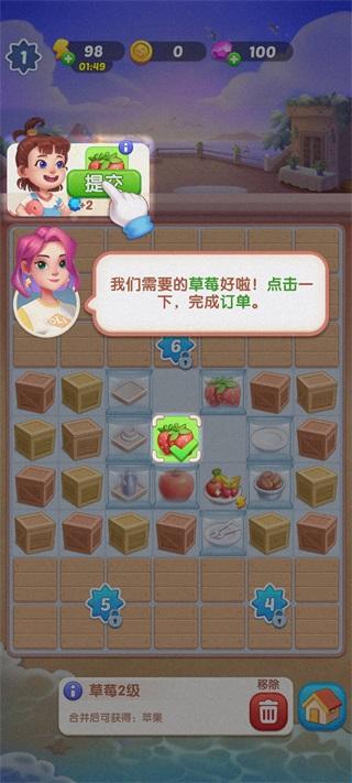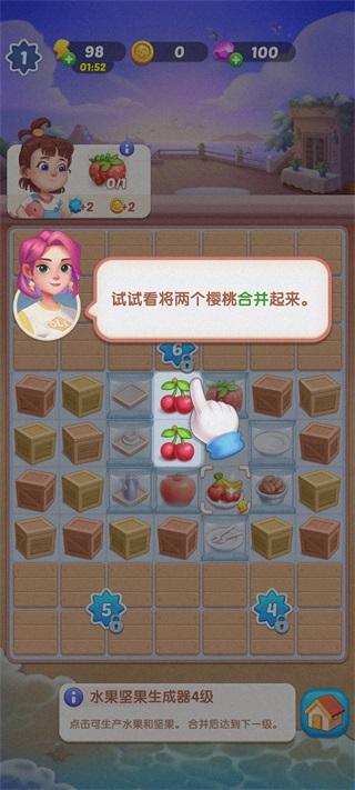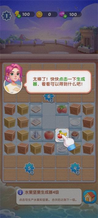 可以通过将两个相同的物品合并升级,来获取更多资源,用于餐厅的修复与装饰。