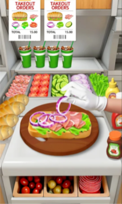 2、待食物烹制完毕,你要及时将它们取下,完成送餐。