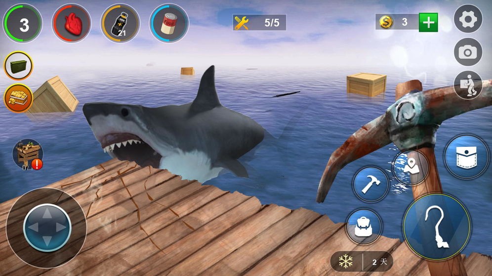 3、在海上生存游戏中,你需要收集大量的建筑材料和材料来建造自己的房子,这是一个临时居住的地方。