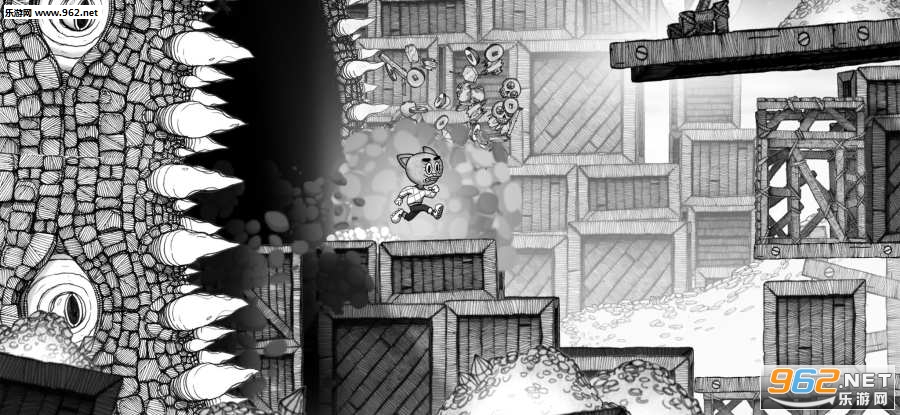 《蠕虫冲刺》又是一款跑酷游戏,不过不一样的是,这款横版跑酷游戏采用了黑白卡通风格,游戏的细节非常的精致,还有各种奇怪的生物飞过场景,让整个游戏有一种复古的感觉。