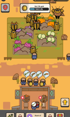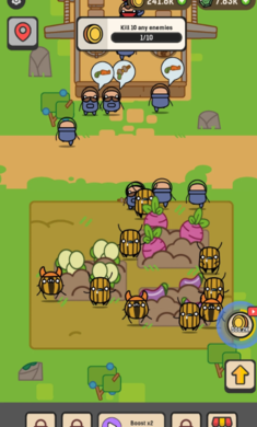 即使离线也能继续战斗。即使您睡觉或忙于自己的事,您的农民也会不断驱赶虫子,并为您获取资源。