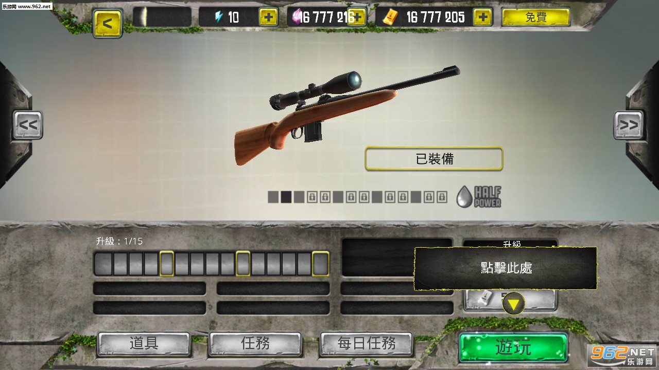 壮观的枪支在游戏等待著你来升级!每把枪有15个等级。提高准确性和火力!以14独特的枪来掌握你的狩猎技能 - 10把经典步枪和4把致命的高级枪 - 每个狙击手都该尝试使用看看!所有的武器有3个匹配的范围,你可以提高你的狩猎技术!作为一个猎人在每个地形测试枪的准确性!这个视觉惊人的FPS狙击手街机游戏现在上架了!