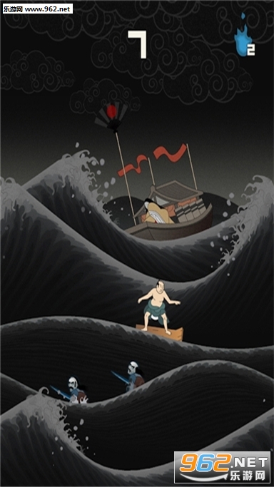 1、玩家可以通过左右滑动画面来移动自己的角色。请玩家利用波浪高高跳起。一旦成功踏上浪尖,玩家就能得分。