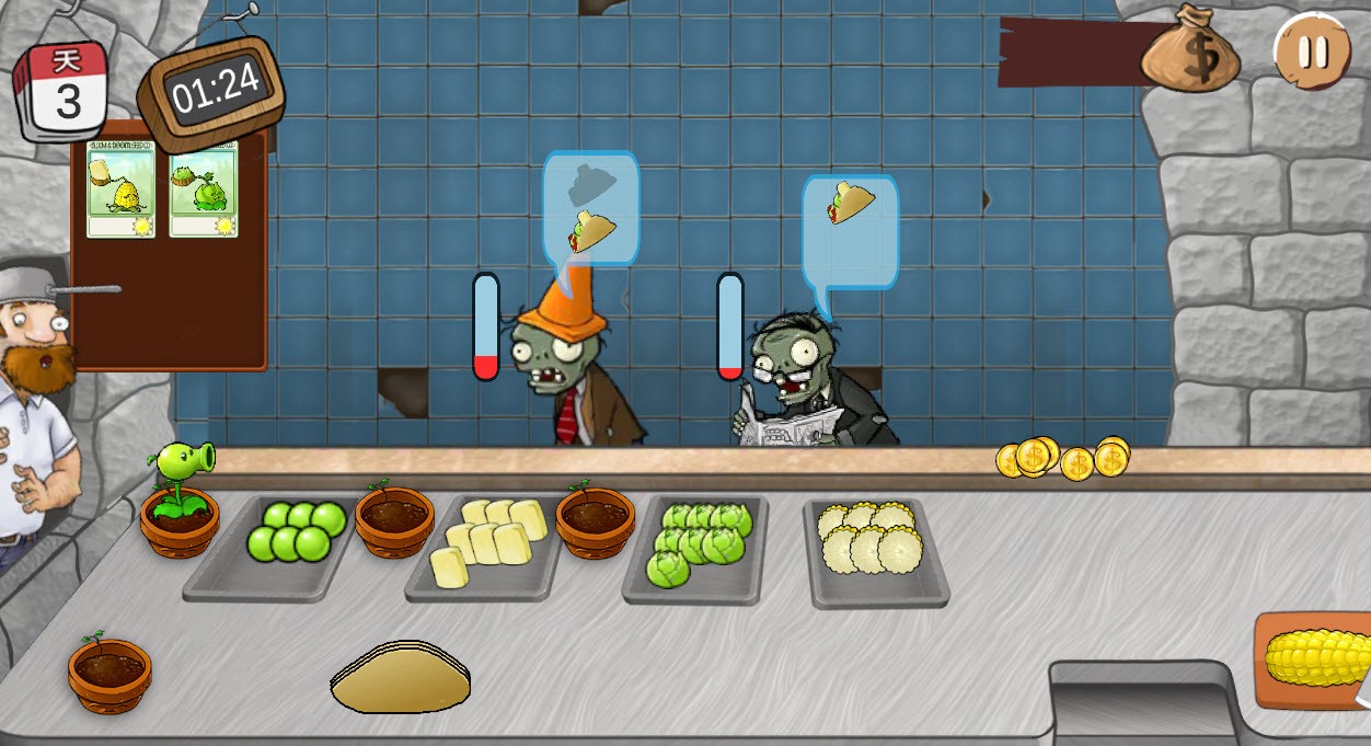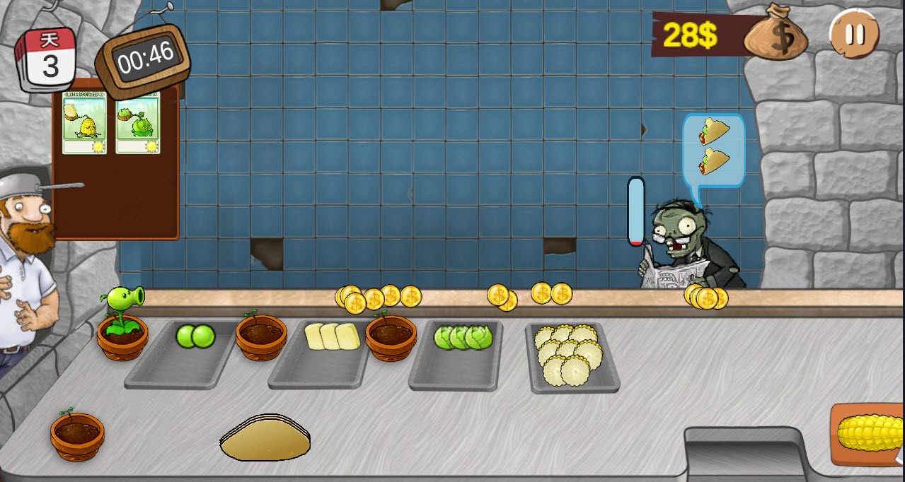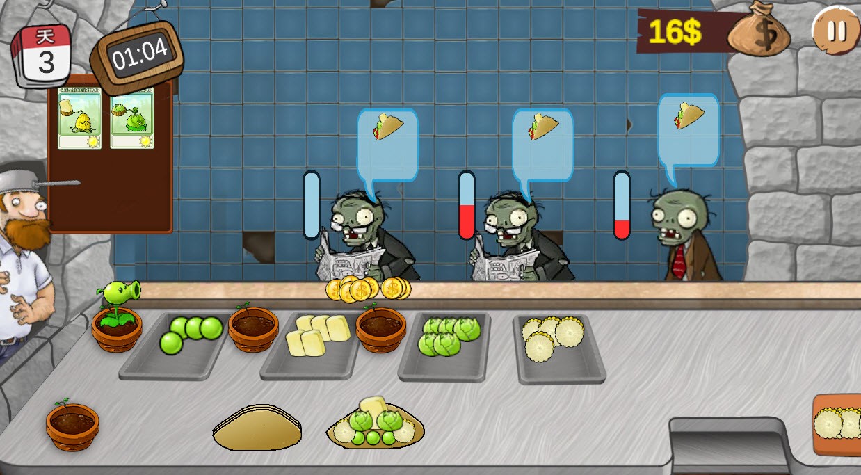 3、根据僵尸的需求,把做好的植物沙威玛给他们。