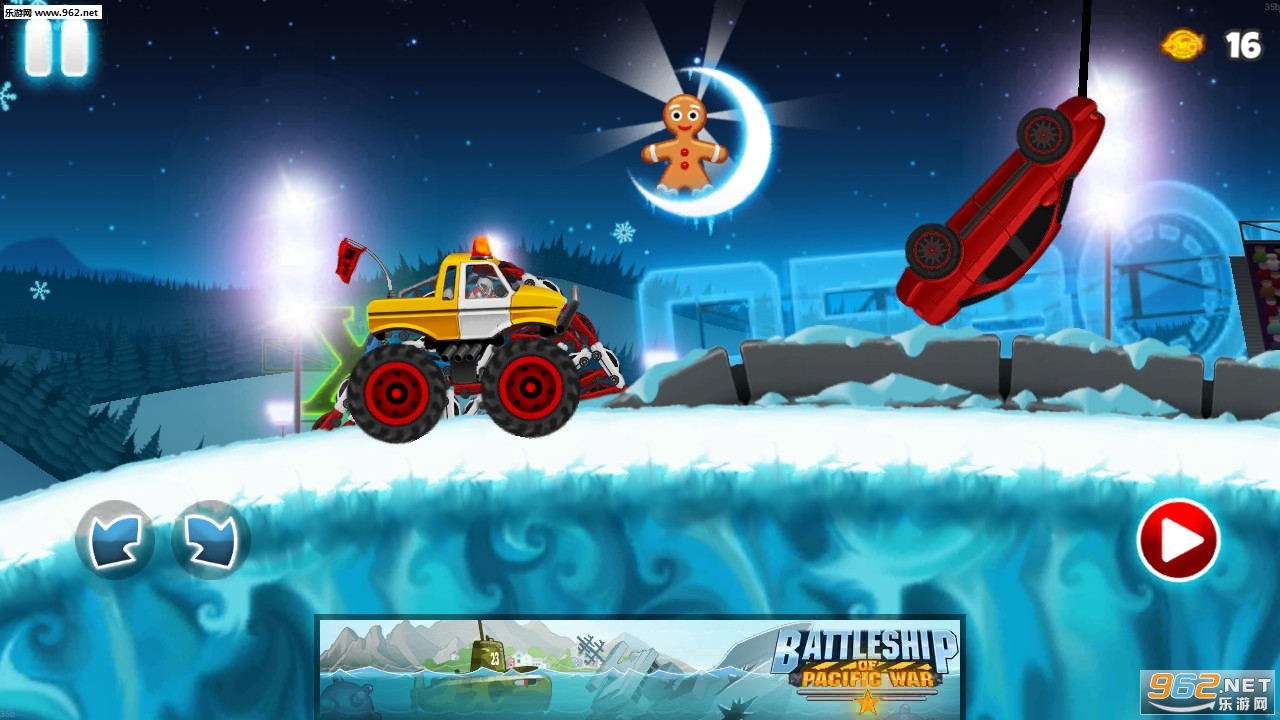 《儿童怪物卡车赛车安卓版》(Monster Truck Kids Racing)是一款画面清新的横版驾驶游戏,游戏中玩家可以驾驶四驱赛车在各种赛道上前行,有着圣诞雪山、山路等各种不同的场景,玩家只需要按着前进按钮快速行驶即可,可以调节汽车的重心。