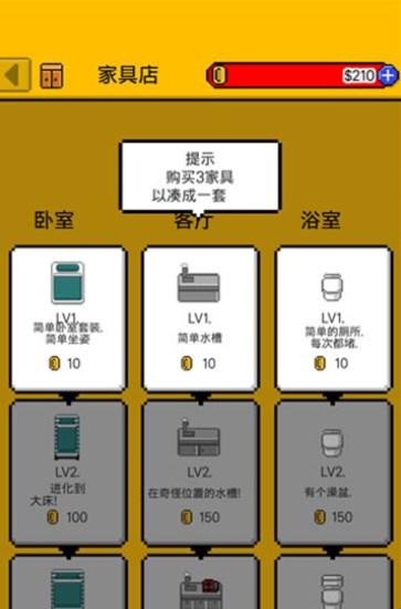 进入游戏后先打工,要是选择“禁止工作”,看个广告就能获得一千万,接着用这笔钱买家具、买房。房子等级决定打工的档次,档次越高,赚的钱就越多。