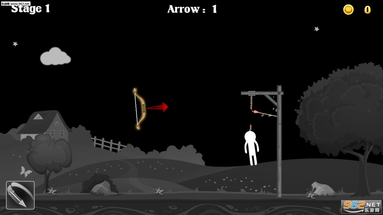 《弓箭手的弓安卓版》(Archers bow)是一款采用黑白画风的射箭闯关游戏,游戏中有着上百的关卡可以挑战,每个关卡中会用绳子吊着一些人,玩家的任务就是调整弓箭的方向和力度将绳子射断,注意弓箭射出去不是一条直线,会受到重力的影响成抛物线。