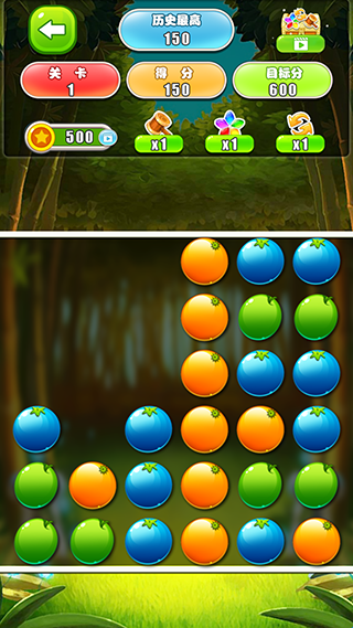 4、一次性消除的水果越多,得分越高,甚至可以在消除完之前提前过关。