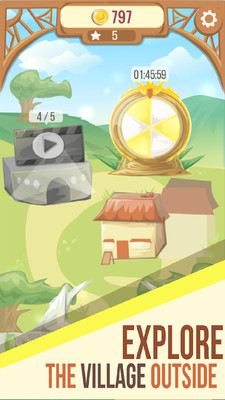 探索村庄:旋转轮子获取奖金或购买新物品;