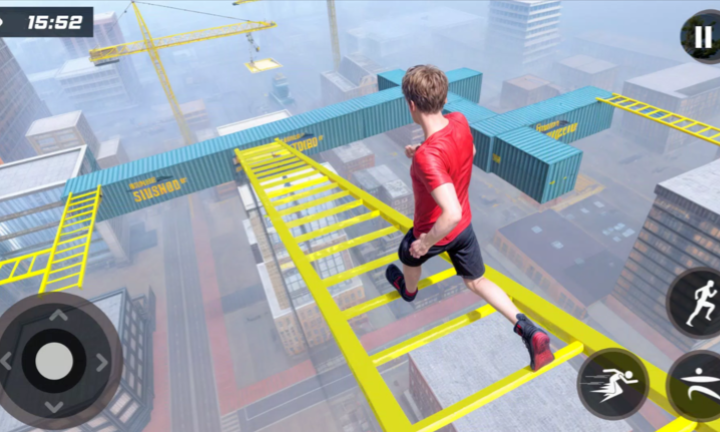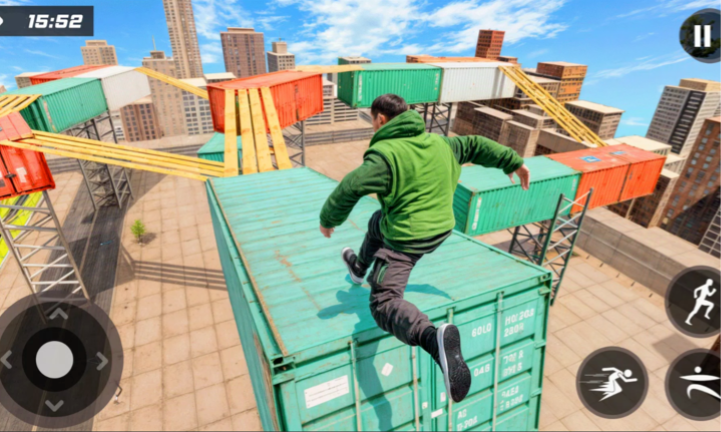 1、在屋顶上进行跑酷,穿越屋顶上重重的障碍,紧张刺激。
