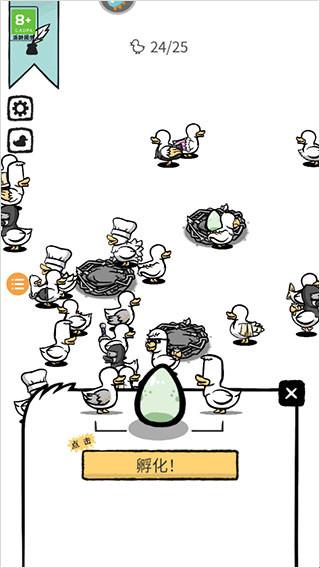 5、黑白画风设计的鸭子闯关游戏,你可在鸭子的全新世界中,孵化出更加厉害的鸭子。