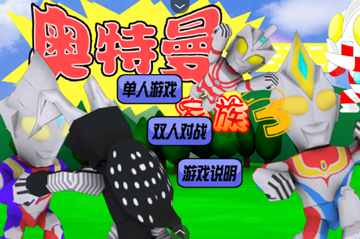 1、进入奥特曼家族3.0游戏内我们可以选择单人游玩或者双人战争。