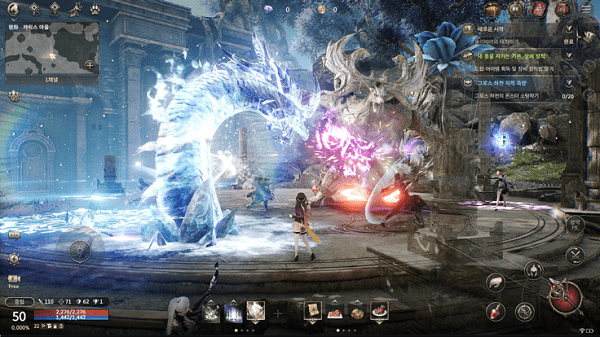《HIT 2》的攻城战中可以使用被称为「魔法屏障」的独特机制,实现更有效率的团队合作。攻城战冰冷的战场被设定在大雪纷飞的雪原上,同时为了更加强调战斗时的动态效果,整体战场采用单色调凸显出人物受伤时的血迹,带来更加华丽且具冲击性的战斗效果。