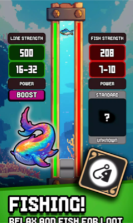 8、钓鱼–放松身心,钓取新鱼种,解锁新区域,升级鱼竿。