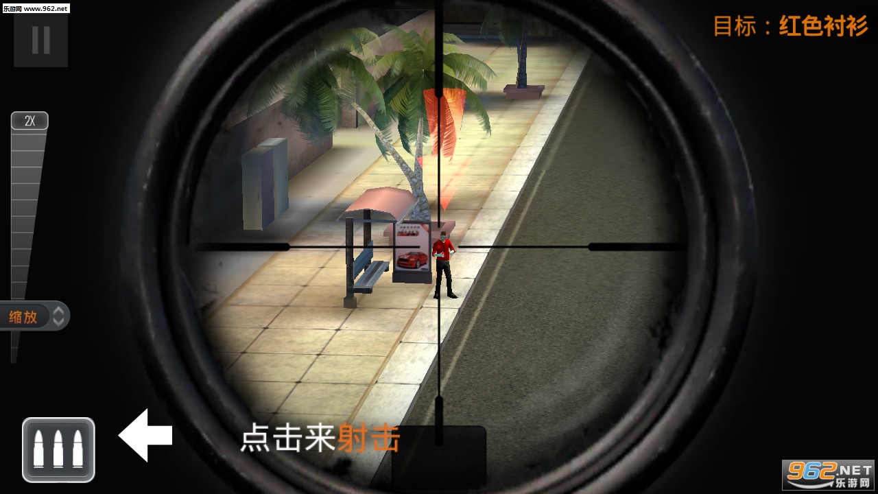 《城市狙击:现代射击安卓版》(City Sniper Fire: Modern Gunner)是一款画面清新的采用第一人称视角的狙击游戏,游戏中玩家将扮演一个狙击手,去狙杀犯罪分子、间谍等,游戏的玩法简单,通过左边的伸缩按钮来放大自己的瞄准镜,点击子弹即可发射。