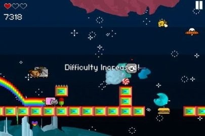 彩虹猫:迷失太空(Nyan Cat: Lost In Space)是一款画面表现力非常出色的休闲跑酷类游戏,玩家可以操控像素小猫,在魔幻般的场景中快速奔跑。沿途有许多零食,帮助你补充体力。游戏的所有内容,将以闯关的形式一一展现,这个过程中得分可以用于兑换金币,购买道具完成更难的闯关。