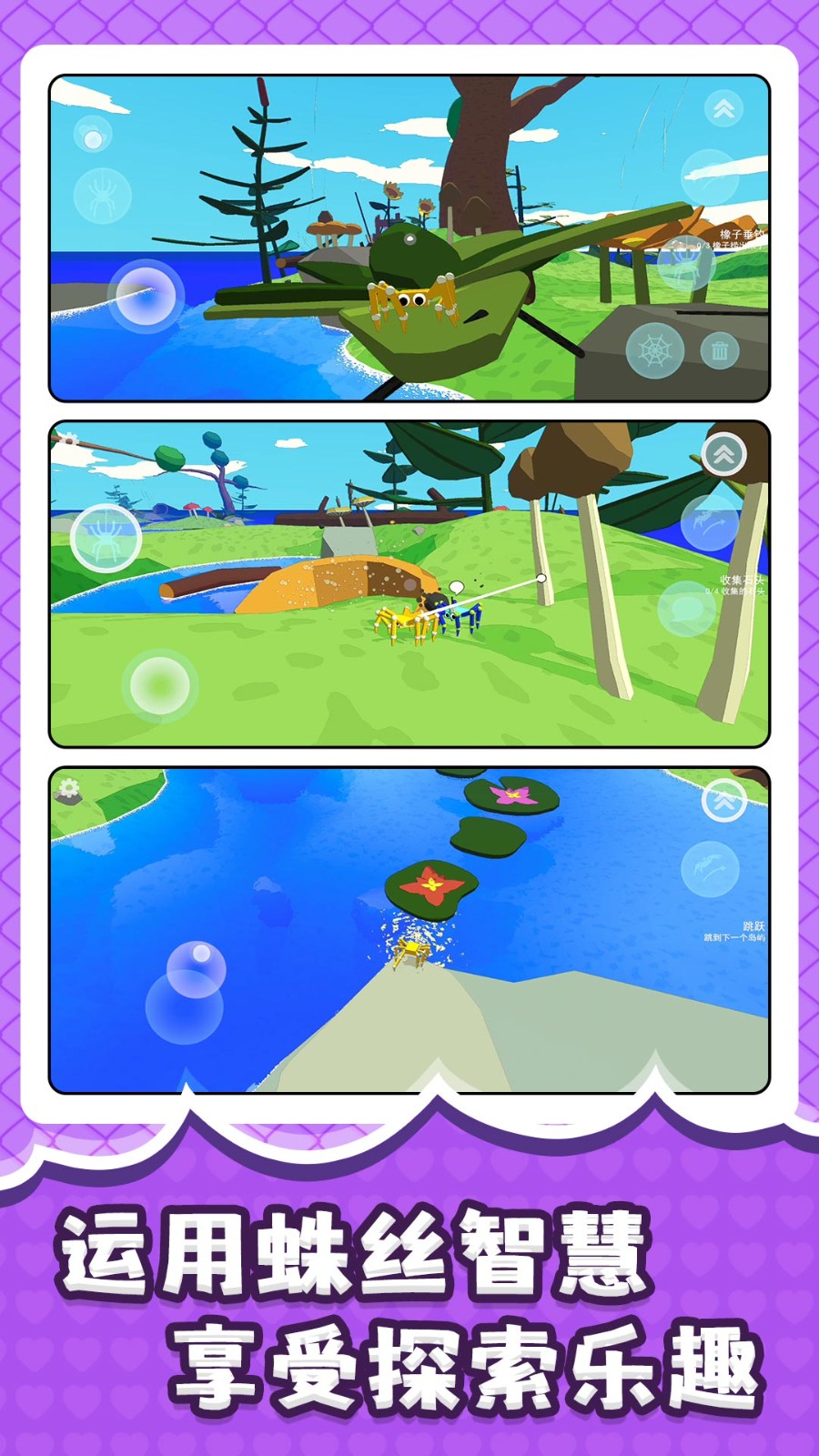 1、游戏加入了丰富的创意元素,玩家可以自由地编织蛛网,打造专属的“蜘蛛世界”。