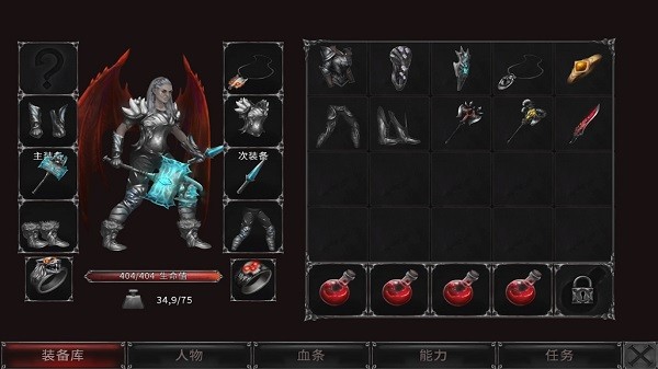 2、装备:主手高伤害高挥击技能武器,第一个图右上城左上武器店那把橙色大剑可以直接用到1周目通关,有钱了换第二个图右下城武器店那两把橙色斧头。副手前期随便拿把加挥击伤害武器伤害爆率爆伤的剑就行。身体装备加红蓝上限和回蓝的优先,护腕先随便带个加武器伤害的就可以,后面直接换橙色的,影响不大。戒指项链同样选爆击爆伤挥击伤害武器伤害的带。
