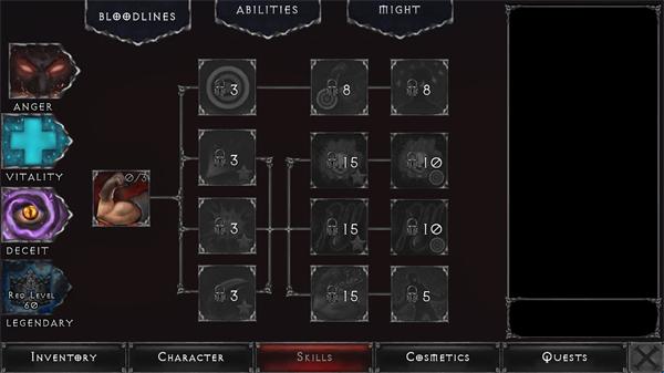 1、能力:优先点攻击天赋,挥击伤害点满,最大伤害点5级,残血狂爆点满,爆击爆伤害点满,其次点生存天赋,最大精力点8级,每回合回气点满,初始精力最大值点满,生命值第一个8级,第二个点满,第三个点满,吸血鬼之触点1级或者不点。辅助天赋点最后一排就可以了。技能锐化点满,加固点满,咬人可以点满,前期还是比较有用,这3个都满了再接着把石化和降防御点满。