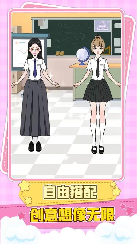 2、提供日系制服、学院风长裙、汉服校服等服饰,支持自定义发色、妆容、饰品,搭配系统包含滤镜、贴纸功能,打造独一无二的角色形象。