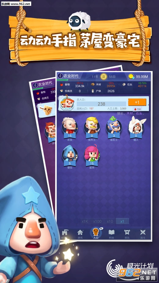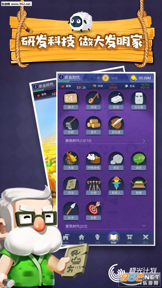 与腾讯极光工作室推出的策略经营游戏,玩家可以采取正确的发展策略,提高国家的人口、经济以及科技水平,而且还可以攀升科技树,推动文明的演变!