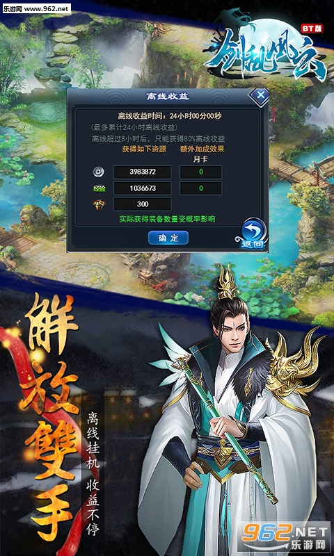 ★月卡立即返还14000元宝,每日发放5000元宝,1000真气,一键扫荡个人BOSS