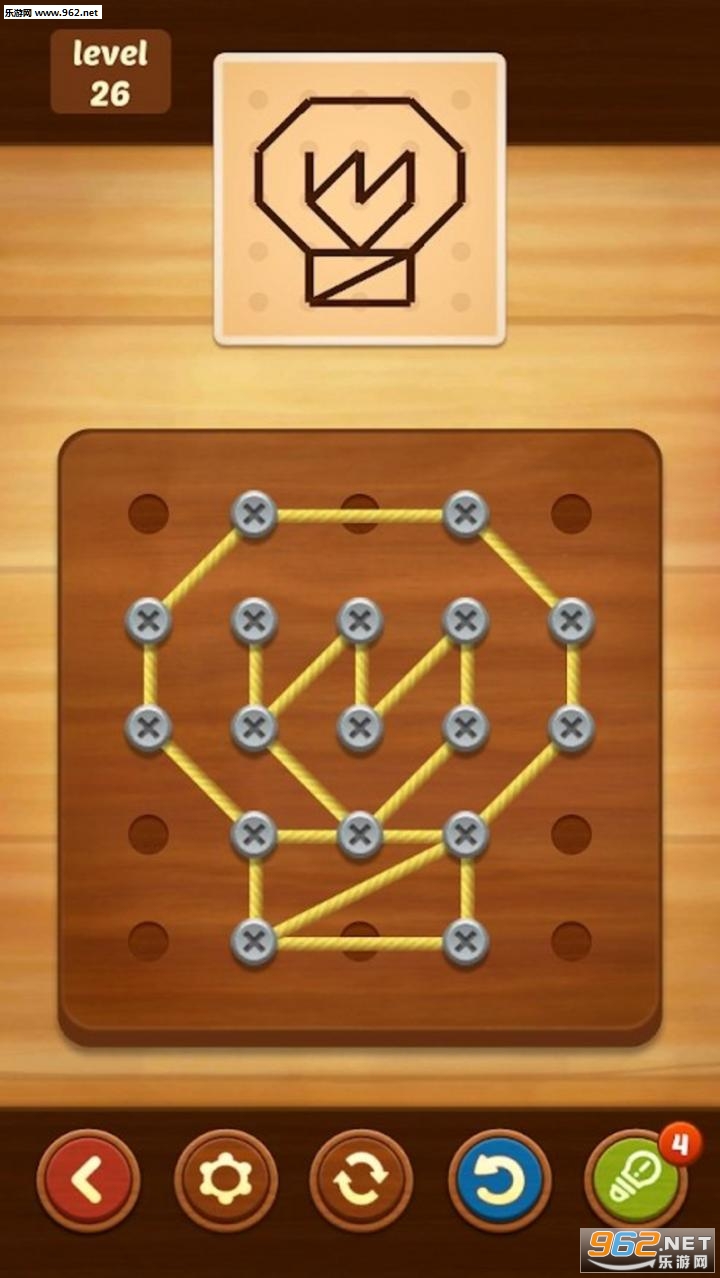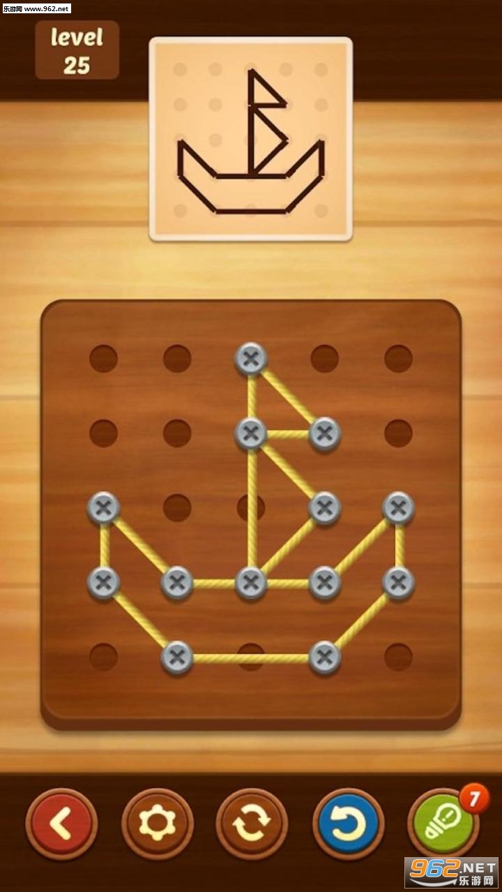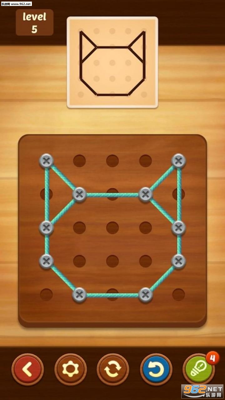 非常不错的闯关益智游戏,游戏规则比较简单,就是通过移动绳子线条重新进行排列来形成目标图形,有着众多不同的图形可以挑战,适合打发无聊的时间。
