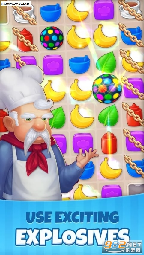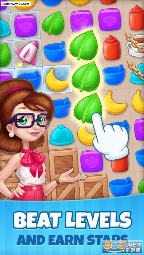 这是一款时下火爆的消除闯关类的游戏,操作挺简单的,玩家只需要通过不停地消除果蔬,以此获取分数,通过分数获取财富,然后自己拥有的财富来装修属于自己的咖啡厅即可!